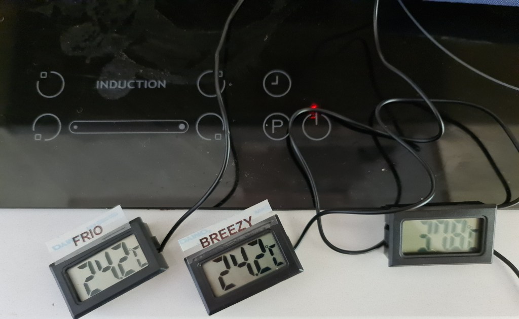 So, for an oven where we the temperature is between 35-40C (95-104F), we see that the Frio took around 15 minutes to go from 25C (77F) to 30C (86F). In contrast, the Breezy Packs only moved 1.5 degrees Celsius over the same time period.
